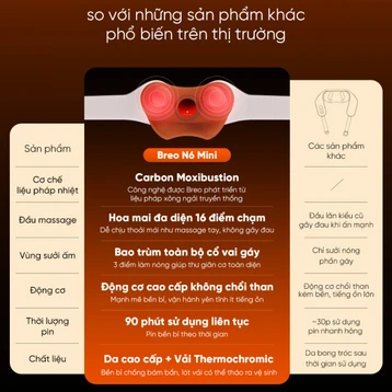 BREO N6 MINI tích hợp 3 chế độ massage linh hoạt, chức năng xông nóng bằng carbon hồng ngoại lên đến 40-45°C, và công nghệ tiên tiến giúp giảm căng cơ, kích thích tuần hoàn máu. Với pin 2500mAh sử dụng lâu dài, chất liệu cao cấp thân thiện với da, và thiết kế nhỏ gọn, sản phẩm mang đến trải nghiệm massage yên tĩnh, tiện lợi cho mọi nhu cầu thư giãn dù ở nhà hay khi di chuyển.